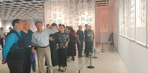 开幕仪式后,各位领导嘉宾及参会群众步入展厅欣赏精美的书画作品,大家不时驻足观看,深深地为各位艺术家的艺术造诣所折服。