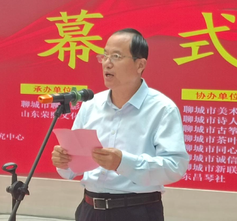 聊城市政协原党组副书记、副主席、聊城市文化和旅游行业党委书记王广柱;聊城市政府原咨询、市老年书画研究会原会长张延安;聊城市纪委原副书记、原监察局局长、市书画研究会艺术委员会副主任汤润芝;聊城市民政局党组成员、副局长刘强;山东运河经济文化研究中心副主任、聊城市原房屋征收管理办公室主任、聊城市文化和旅游行业党委副书记、聊城市汇通黄河运河经济文化研究中心理事长周长春;聊城市文化和旅游行业党委委员密茂繁;聊城市文化和旅游行业党委委员龙清军; 聊城市文化和旅游行业党委秘书王彦光 、聊城大学美术学院原院长钱品辉;聊城市市直书法家协会名誉会长王怀金;原聊城市交通运输局党委书记、局长韩建国;山东省茶叶协会副会长、聊城市茶叶协会会长李乃辉;聊城市文联会兼职副主席、城市诗人协会会长、国家一级作家、中国作家协会会员张军;聊城市市直书画家协会主席宋星旺;聊城市美术家协会党支部书记、常务副主席、东昌书画院常务副主席王怀中;聊城市古筝协会主席王焱;聊城市行政区划与地名文化学会会长姬广军;孟尝君酒业董事长韩宪增、聊城市书画研究会会长刘月宽;聊城市文化馆原副馆长高春;东昌古琴社社长李海红等聊城市的知名人士参加了开幕式。