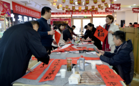 山东新闻网:(张 军)近日,龙年春节即将来临之际,聊城城市直书画家协会副主席,雅风书院院长韩春光和聊城市直书画家协会的书画家们在聊城开发区华韵琴行大厅里,现场为华韵琴行学员家庭以及来琴行参观的市民写春联送祝福,将节日的喜庆提前送到大家身边。