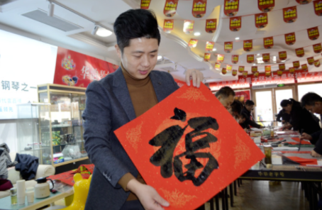 在活动现场,聊城市直书画家协会的各位书法家热情高昂,他们将新春寄语和真诚祝福赋予笔端,尽情挥毫泼墨,书写春联、“春”、“福”字,隶、楷、行、草等多种书体各显神韵。书法家的笔锋如行云流水一般,名家风范尽显。一个个美好的祈愿挥洒纸间,浓浓幸福的年味儿,唤起了人们对新年的期待……。“写春联送祝福是我们琴行每年都举办的公益性活动,各位书法家能每年在琴行参加这么有意义的活动,我感到十分荣幸。另外,孩子在琴行不仅有机会跟国内外演奏名家学习中西方的乐器,还可以学习中国的传统书画艺术,感受春节等传统文化,今后我们将一如既往开展更多有益于聊城高质量发展的活动。”聊城华韵琴行有关负责人表示。