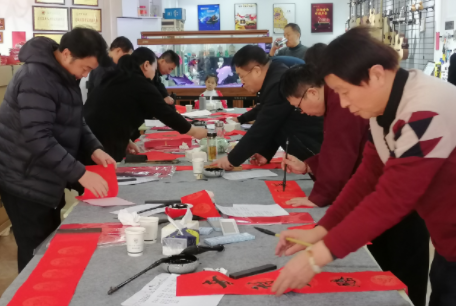 山东聊城市直书画家协会联合华韵琴行开展写春联送祝福活动