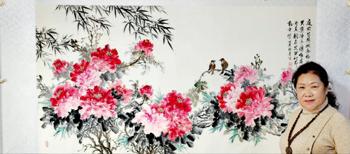 3月16日,在秦北虎文化传媒工作室,终于见到了周玉兰老师。映入眼帘的是一幅宏大巨作,对于书画,我是外行,对于文字,我具有敏感气息。从周老师的谈吐中,我感觉到是一个艺术细腻的人,有着对于生活标准要求很高的人,对于事物和作品非常严格的人。字里行间了解到,周老师做过医学工作,虽然不是太懂,但也听说过其中利润,特别是在她们那个年代,周老师还是放弃了,是因为她对书画的执着与热爱!