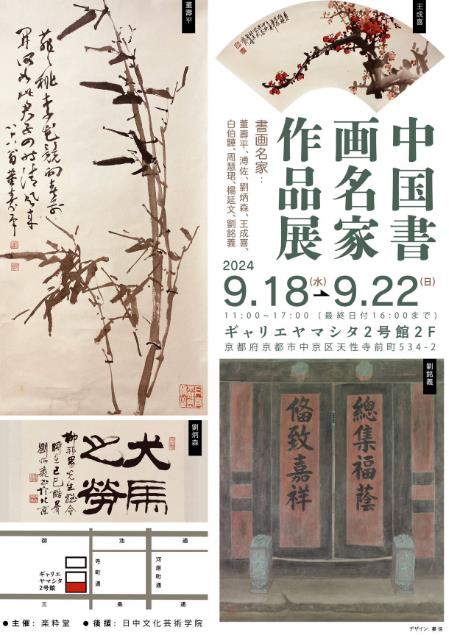 2024年9月18日—9月22日,中国书画名家作品展在日本京都成功举办!此次展览由日本京都“乐粋堂‘’主办,日中文化艺术学院后援。共展出了中国书画名家董寿平、溥佐、刘炳森、王成喜、白伯骅、周慧珺、杨延文、刘铭义的书画精品之作,艺术作品展现出了艺术家们高超的技艺与创意。展览期间,参观者络绎不绝,中日各界人士给予了高度评价。