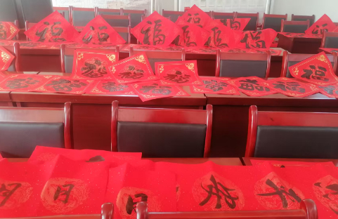 活动正式开始后,书画家老师们凝神聚气、挥毫泼墨,毛笔在红纸上行云流水,一撇一捺尽显功底。喜庆的“福”字、吉祥的新春对联跃然纸上,“春归大地人间暖,福降神州喜事多”,一副副寓意美好、墨韵飘香的春联和千张福字,不仅承载着书画老师的美好祝愿,更饱含着对新年的美好期许。书画老师共为蒋官屯任庄村写100余副春联和“千张福”字,每一幅作品都凝聚着温暖与祝福,传递着浓浓的节日温情。手写的春联才有年味儿,贴在门上既喜庆又有意义,村民们捧着刚写好的春联和福字,喜悦之情溢于言表。