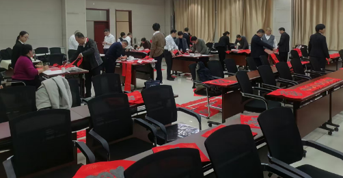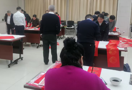 活动现场,翰墨飘香。来自聊城市书画家协会的多位知名书画家齐聚工行聊城分行四楼会议室。书画家们铺纸研墨,挥毫泼墨,笔走龙蛇。楷书、行书、隶书等多种书体各显神韵,“一帆风顺全家福,万事如意满院春”“喜居宝地千年旺,福照家门万事兴”……一幅幅寓意吉祥的春联,一张张饱含深情的“福”字,跃然纸上。一下午书画家们都大汗淋淋的一刻也不敢休息埋头写作。百余副对联呈现在眼前,员工不嫌弃烦的等待心意的对联,赞不绝口, 一句写话的真好寄托了对新年美好的生活向往与祝福。