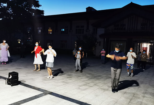 夜幕降临,山西运城安国中医结核病医院住院部大院,广场舞音乐激情响起,部分来院患者和陪护家属在音乐声中翩翩起舞,在这些人群中有一位患者把她当做亲人的志愿者特别显眼。她就是来自新疆的拉扎特。之所以能在此做志愿者,缘于安国医院给了她第二次生命。