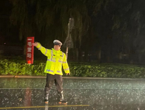 大雨暴雨降水期间,菏泽市东明县公安局副局长、交警大队大队长朱卫东冒雨带领民辅警始终奋战在第一线指挥南来北往车辆,及时指挥疏导积水严重路段车辆绕道行驶。越下越急的暴雨水淌满了朱卫东副局长脸庞时,他甩甩警帽上的雨水,抹下脸上的雨水,继续分流拥堵车辆,手拿对讲机随时按排民辅警解决雨水中困难群众,直至29日20时43分,降雨量减少,道路安全畅通……