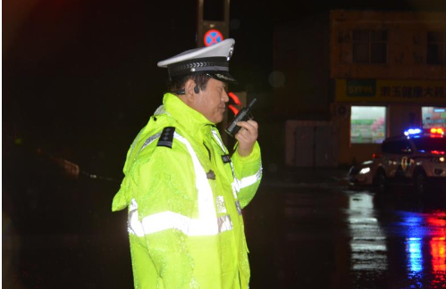 大雨暴雨期间东明县公安局副局长朱卫东带领民辅警奋战一线指挥交通