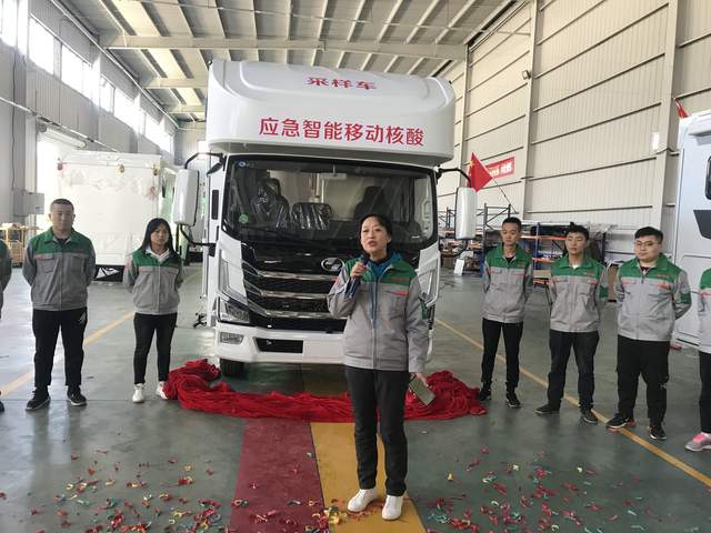 10月11日上午,科发房车自主研发的应急智能移动核酸采样车在山东科发房车科技有限公司成功下线。公司董事长张克佳,公司总经理许慧,办公室主任白莉莉等出席下线仪式。