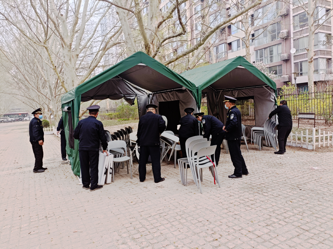 在大规模核酸检测工作中,物业项目主动请战。项目经理主动向社区请领任务,都亲自上阵,抽调精兵强将,搭建帐篷,摆放桌椅,放上隔离橙,拉上警戒线,规范检测场所。物业上传下达社区指令,及时张贴通知到每家每户,利用微信群、电话、入户敲门等多种手段通知广大业主积极进行核酸检测。安保管理人员带领员工维持秩序,客服人员用手机、用设备、医疗器械协助扫身份证、扫二维码等技术支持,工程人员通电通水,为现场提供硬件服务保障。