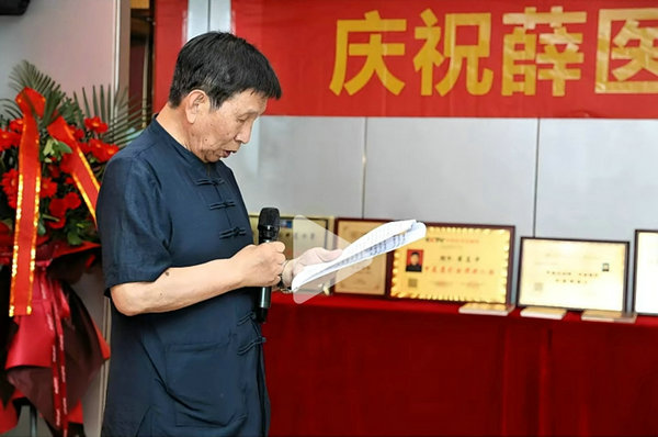 薛应中大夫在发言中说,当初创立薛医堂就是想真正弘扬中医药文化,做中医文化堂堂正正的传承人,做新时代中医药文化的传播者和引领者。15年来,经我手诊治的患者来自省内外甚至国外,保守估计有五万人之多。发言中,他寄语同仁要有信心,中医不仅能治病,还能治大病,不仅能治慢性病,还能治急性病、危重病;要有恒心,坚持不走西化之路,保持纯正中医特色;要有决心,中医人自己要争气,更要有底气。他同时寄语患者,不能抱有两头下注的心理,在医生面前要实话实说,在他看来中西医(药)结合是很害人的;很多慢性病,因长期服用西药,其副作用积重难返、最终爆发,导致肠胃功能严重受损,不能吸收中药有效成分,从而影响中医治疗效果。 分享环节,中央巡视组一位领导说,薛大夫潜心半生,立足临床,践行民族医药挖掘,传承中医新药研发,以现代创新思维打开中华中医药文明宝库,孜孜不倦,默默奉献,其精神和品德,令人称赞。