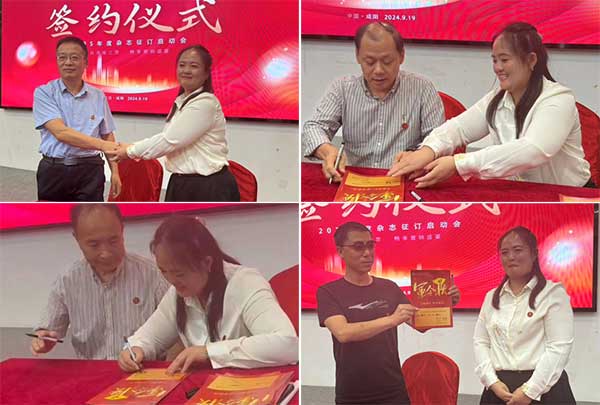 广发部王红对本次杂志征订的要求及标准做了讲解,同时激动人心的签约仪式正式开始。甘肃站、汉中站、宁夏站、西安站、铜川站、商洛站、青海站和广西站的站长们依次上台,广发部负责人王红代表杂志社与各工作站站长进行了签约,这标志着杂志社与各工作站2025年杂志征订发行工作正式开启。