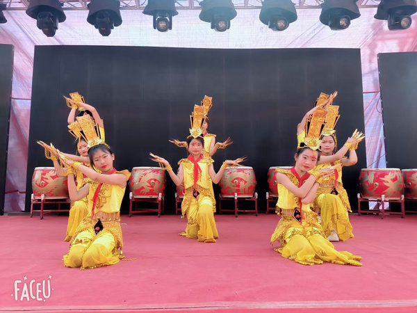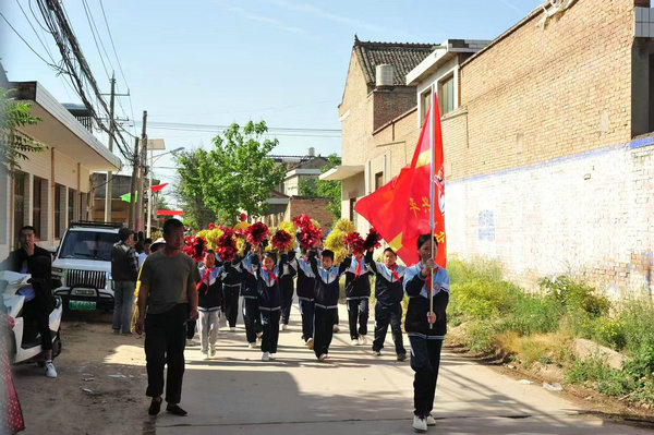 开幕式后,一场融合传统民俗与时代新风的文化盛宴轮番上演。尚志村村民组成的礼炮方队、秧歌方队率先登场,铿锵的锣鼓与欢快的舞步点燃全场热情;耍狮子、秦腔戏曲等非遗表演赢得阵阵喝彩;知青艺术团与希望小学师生共同献上歌舞《在希望的田野上》,传递出城乡共融的温情;学生们声情并茂地朗诵由陈新民会长撰词的诗歌《让山再高让河再宽》、自导自编表演的舞蹈《千手观音》均赢得阵阵掌声。艺术节期间,组委会还向社会公开征集文艺节目,涵盖农民自创小品、农业主题诗朗诵等,生动展现新时代农村风貌。在5月2日演出时,贫困学生南位镇固显村刘浩轩的爷爷和双照街道张安村安泽豪的家长也来到活动现场,为学校创始人刘艳赠送了“关爱教导有方 疼爱无微不至”“一位好老师 胜过万卷书”的锦旗,以示感谢。