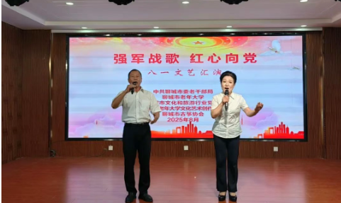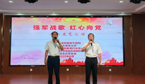 为庆祝中国人民解放军建军98周年,弘扬爱国强军精神,8月1日上午, 市委老干部局、市老年大学、市文化和旅游行业党委、市老年大学文化艺术创作协会、市古筝协会联合举办“强军战歌 红心向党”庆八一文艺汇演。