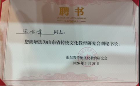 - 祝贺张振峰被山东省传统文化教育研究会增补为副秘书长